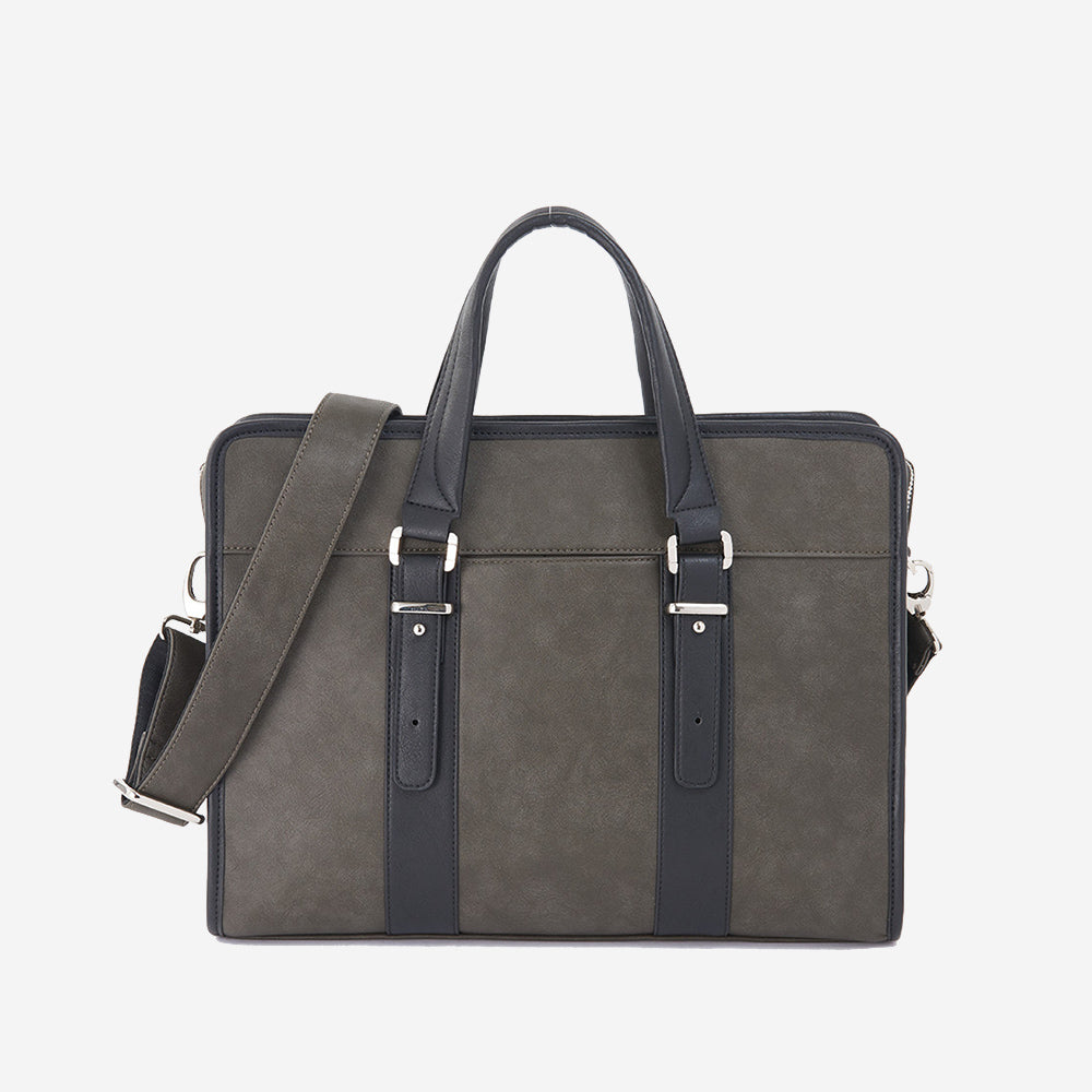 持ち手は長さが調節可能で、付属のショルダーで肩掛けもOK。メインファスナーは下まで大きく開き、物の出し入れも簡単。とても軽く、雨の日などのお手入れが簡単なPUレザー素材を使用。外と内の両側にある様々な収納ポケットやPCホルダーで、ビジネスアイテム一式を、整理して収納することができます。お色はスタイルに合わせて3種類。嫌味のないバイカラーのため、どんなすーツスタイルにも相性抜群。幅広い世代の方々に愛用していただける、飽きのこないデザインです。